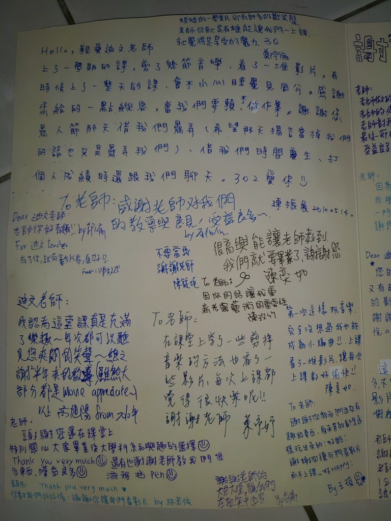 這群可愛的302孩子們,你們的創意和用心,真的令我非常感動,看著每一位孩子親手寫下的感言,充滿一整張大卡片,所看到的不是只有簡短文字,映入眼底的是那一幕又一幕的課堂生活。