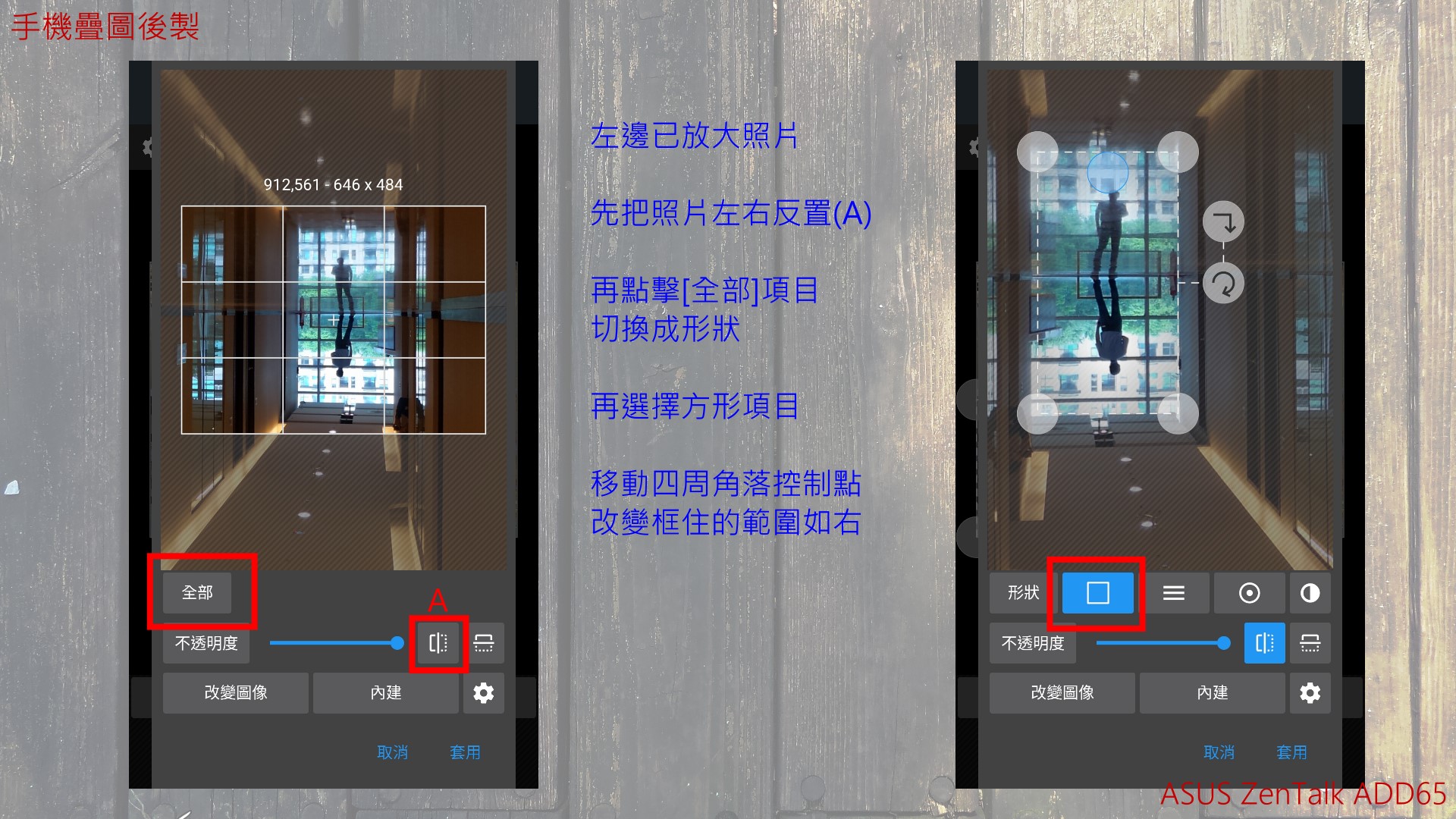下面提供10張圖卡說明主圖的後製過程,只因APP版本更新,所以在擷圖畫面和現在版本有些不同,但大方向都不變,只是功能選擇位置不一樣,稍微在手機畫面中找一下,仍可找到對應的項目。