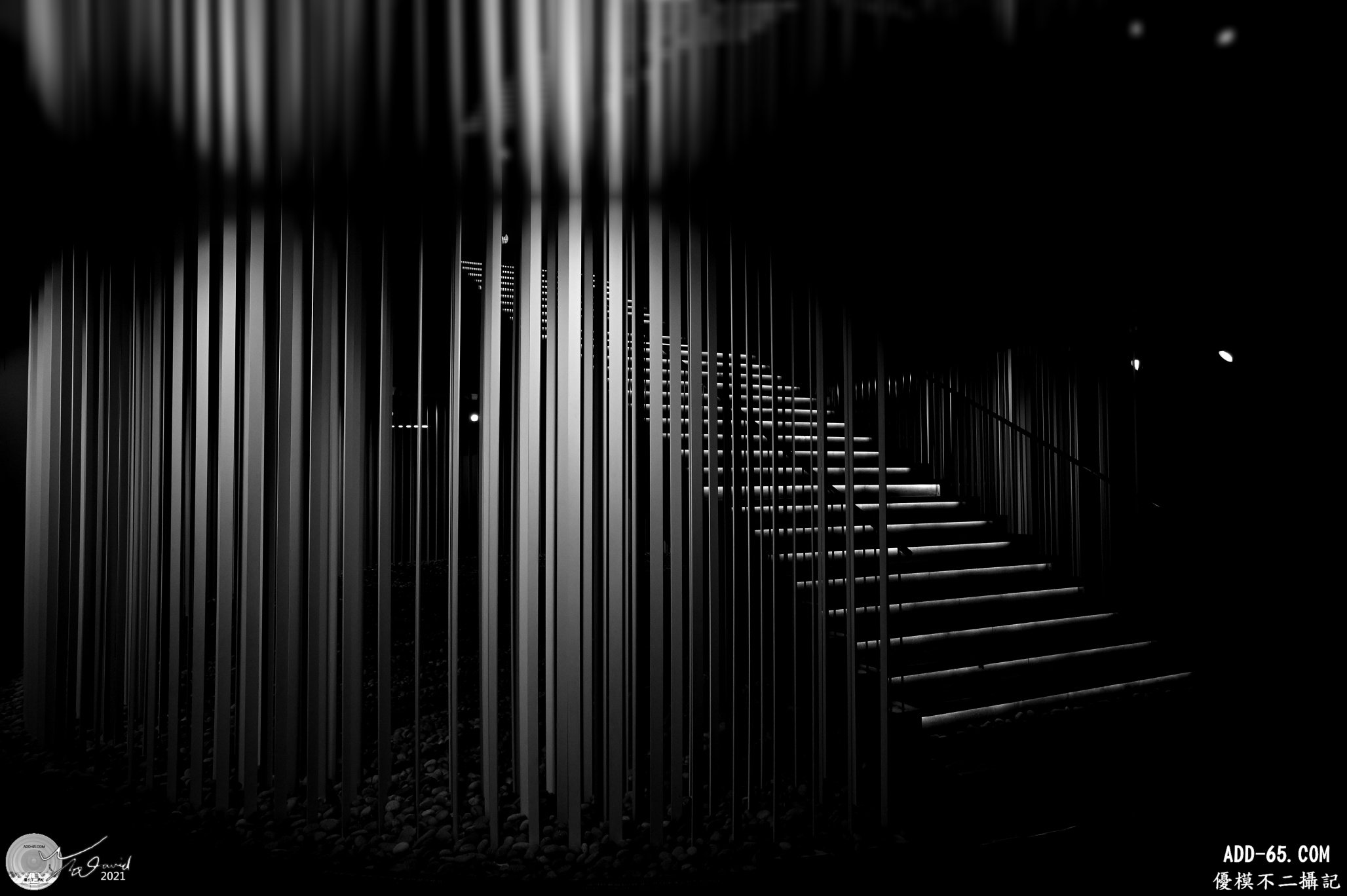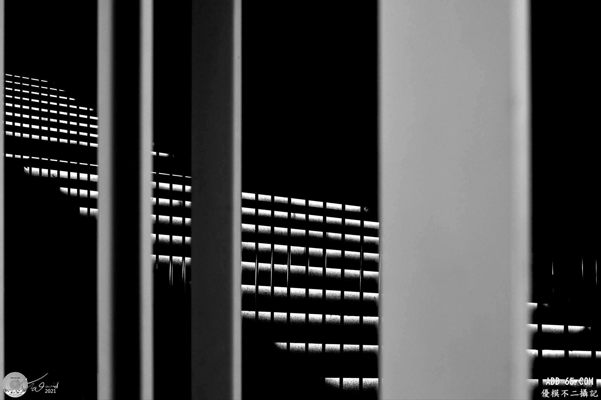 黑白照片,重點在呈現線條和光度變化,只有明暗對比沒有色彩,已超乎頻率的作用影響,這類照片主要是曝光量的控制,幾何圖形的構圖,於固定ISO之下,由光圈與快門互相配合的結果,留待其它文章再深入討論。