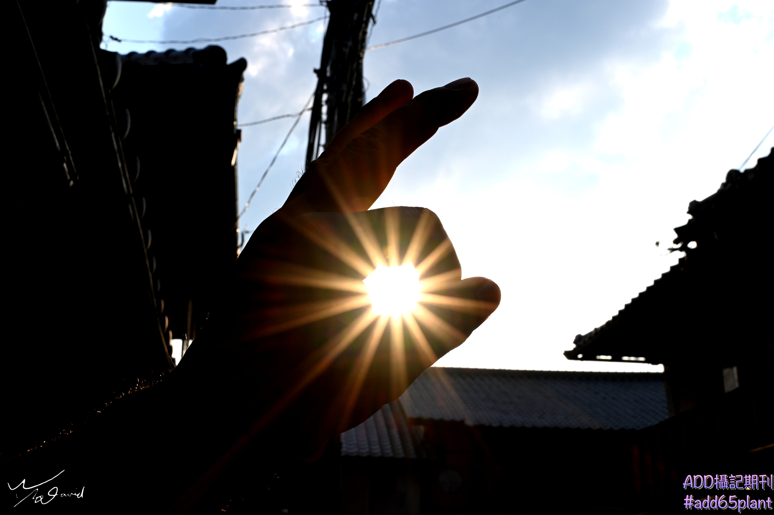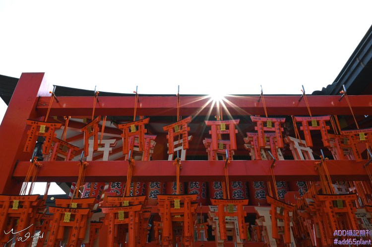 再來一張,在轉往伏見稻荷大社的祈福牌前,陽光角度剛好可以在牌架上方,二話不說,先拍下這畫面。下午3點56分,陽光強度也減弱了,是適合拍攝陽光星芒的照片,對眼睛和相機傷害較小。