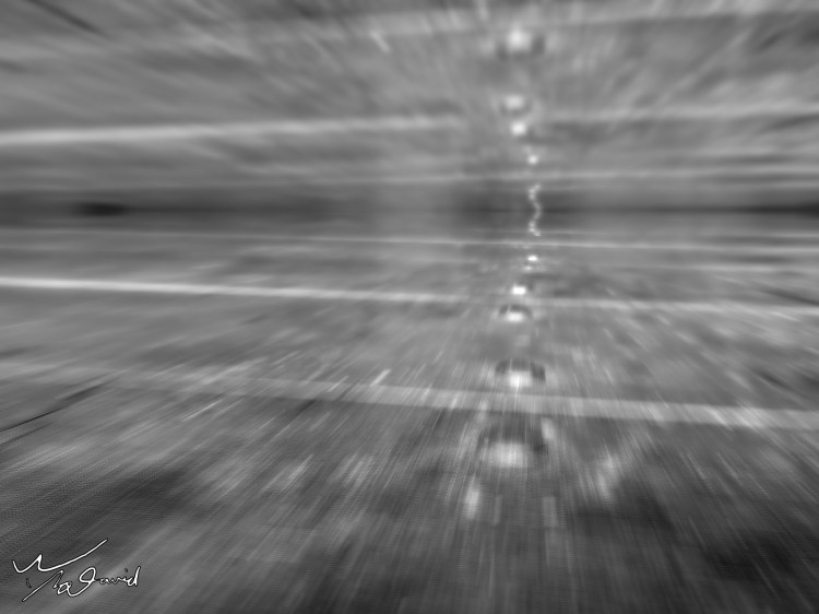 下圖是2017年4月份陪國外朋友到中壢訪友時,在餐廳裡用手機玩拍的一張地板照片,用鏡射加上糊焦處理後,再做一點拉焦效果,就變成一幅抽象畫作,如果只呈現原本清楚的地板,反而沒什麼意境。