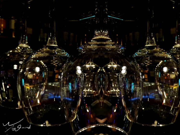 20210116在美麗華用餐時,拍下餐廳的吊燈(ISO-200,F/3.5,1/160秒),對半鏡射後上下倒置,變成像是高腳杯的外形。吊燈的電線細長,讓高腳杯的外形變得很特殊,加上裡面燈泡和倒影,非常有趣。