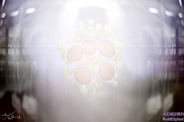 下圖也是疊合而成,底圖是【鏡射應用(四)】展示的作品(ISO-400,F/4,1/40秒,EV-0.7),再把朱槿的花蕊用保留光度方法貼在上層,是筆者在回憶小時候電視節目_五燈獎的想法。