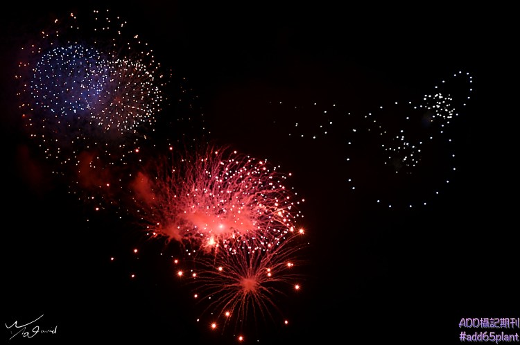 煙火是常見現場重曝,或是拍攝後進行圖層疊合後製,主圖和下圖是後製疊合兩張煙火照片。煙火照片的疊合是最簡單,因為通常都是在夜晚拍攝,大部分背景是黑底,只要把要疊合上去的圖層光度保留(黑色透明),疊在底圖上,就完成像主圖和下圖一樣的照片。兩張照片是2019年10月在東京迪士尼用Z6相機拍攝,ISO-1000,F.5,1/100秒,EV-0.3。
