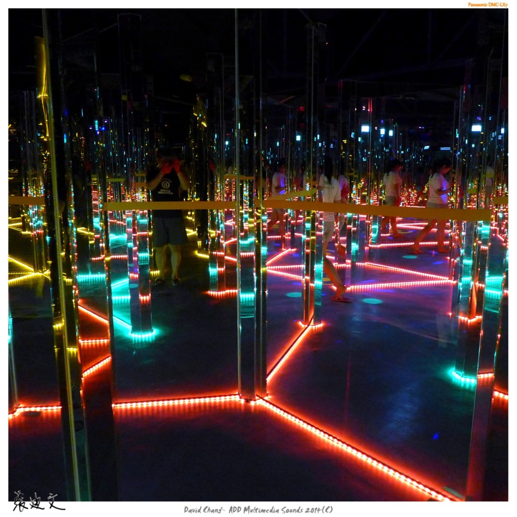 下面再提兩種不同的玻璃反射應用,20140823在劍湖山世界遊樂園裡拍攝,多面玻璃鏡的場景,有萬花筒的視覺效果。