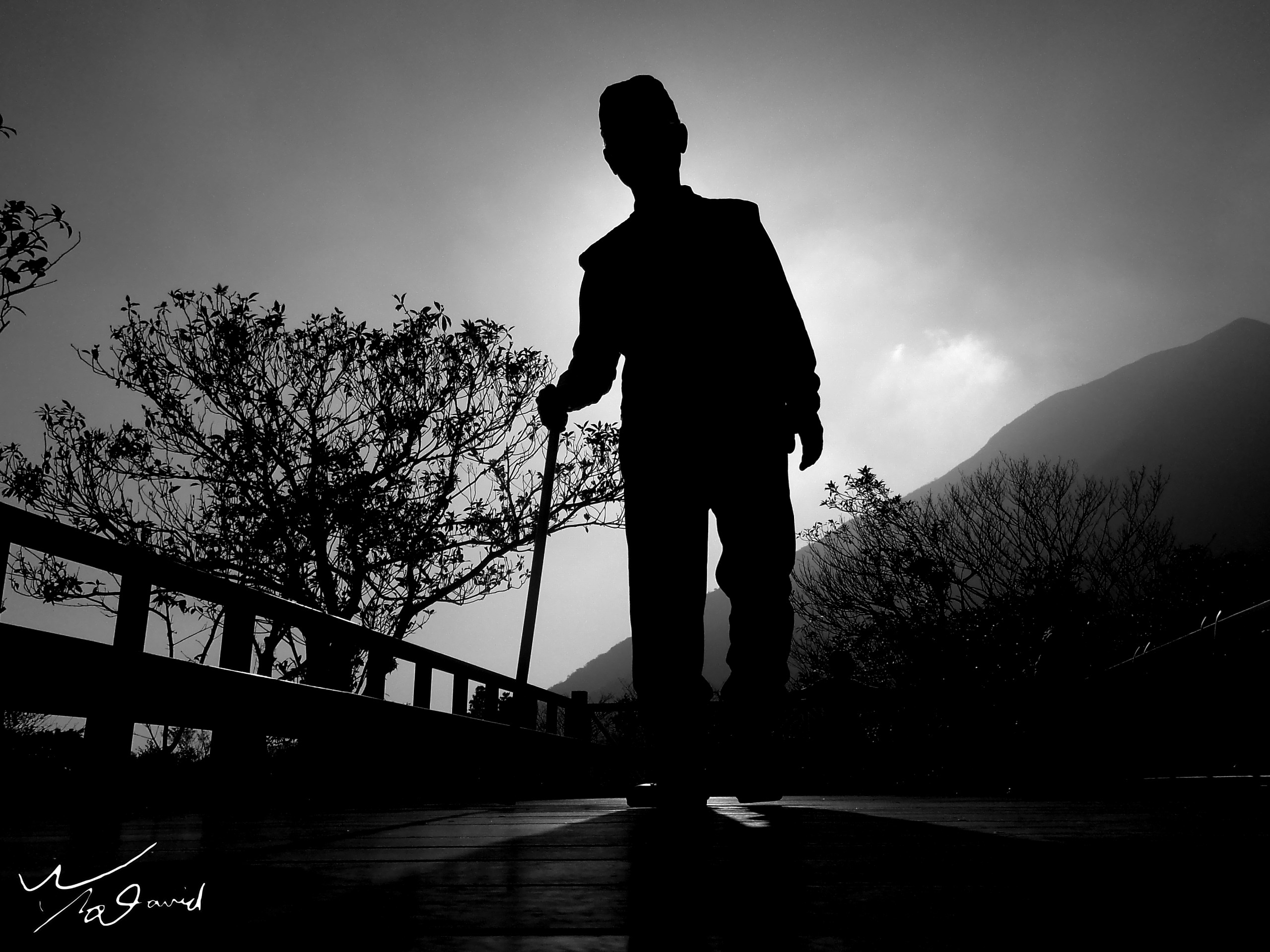 20161226那一天接近夕陽時分,陪家父到竹子湖練習走路進行復健,用手機記錄下當時練習走路的剪影,用黑白記錄當時的光影。