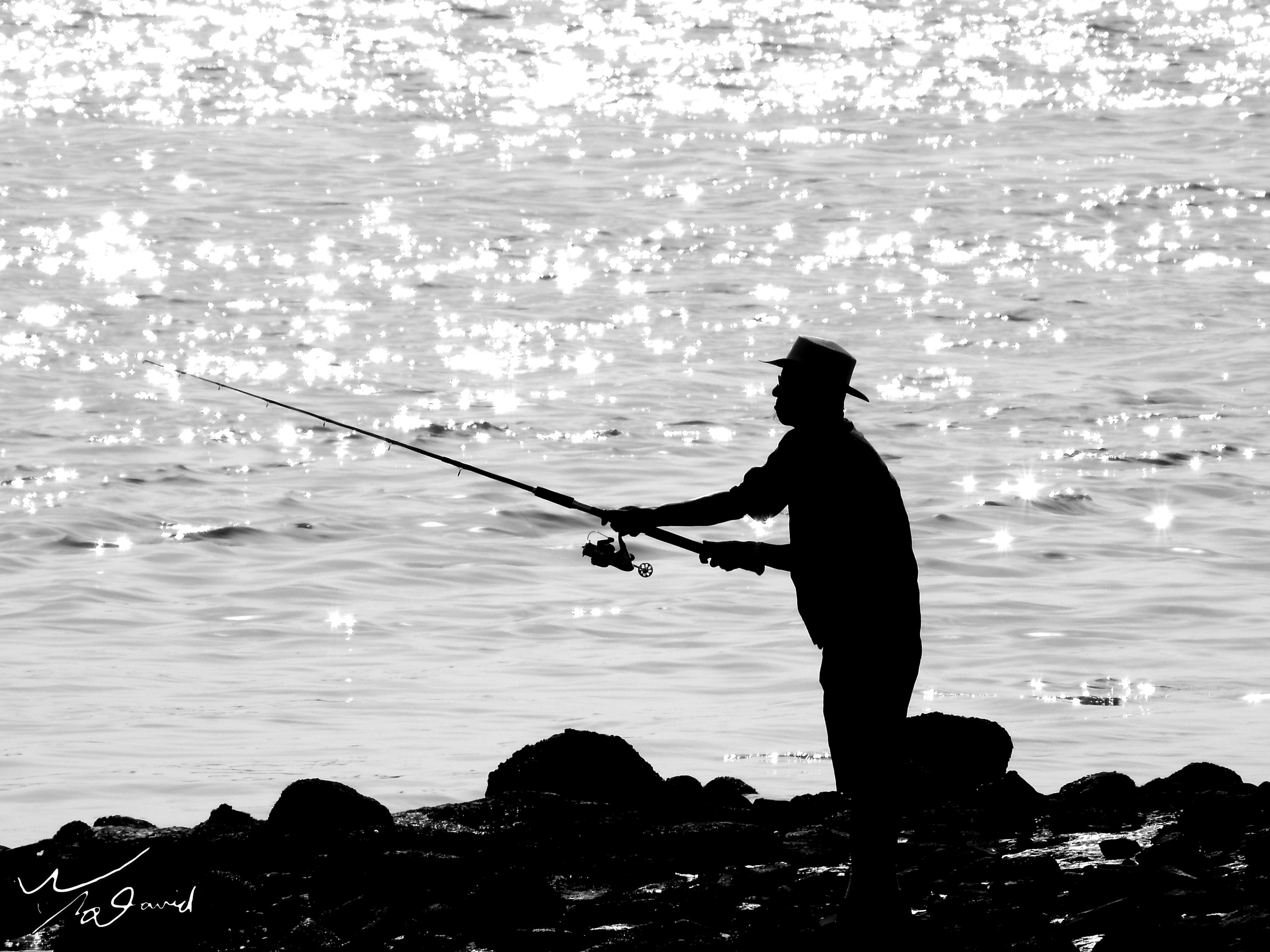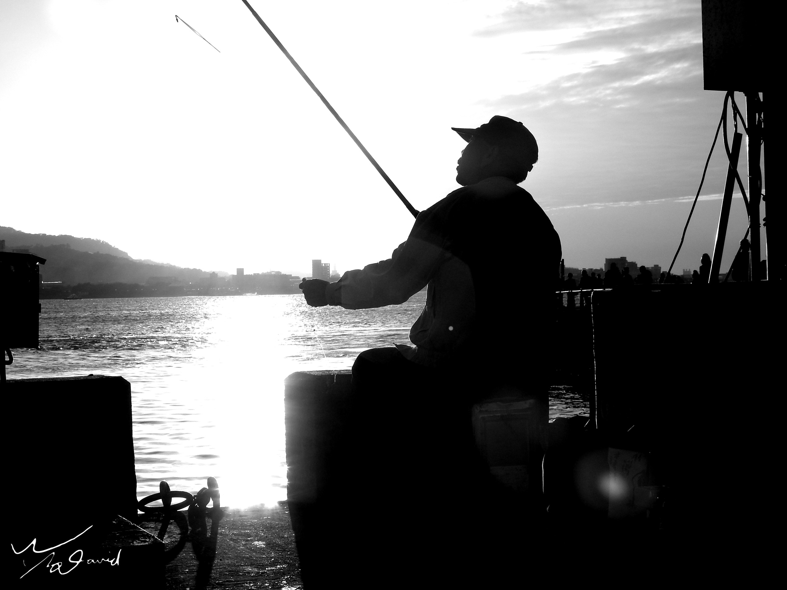 剪影照片,只要有逆光都能拍攝,下面三張照片,分別是2017年和2018年在淡水捷運站後方拍攝的照片,左圖玩泡泡的是用手機拍攝,右兩圖是用P900長焦段拍攝釣客的動作。可以由照片中感受到當時的氛圍。