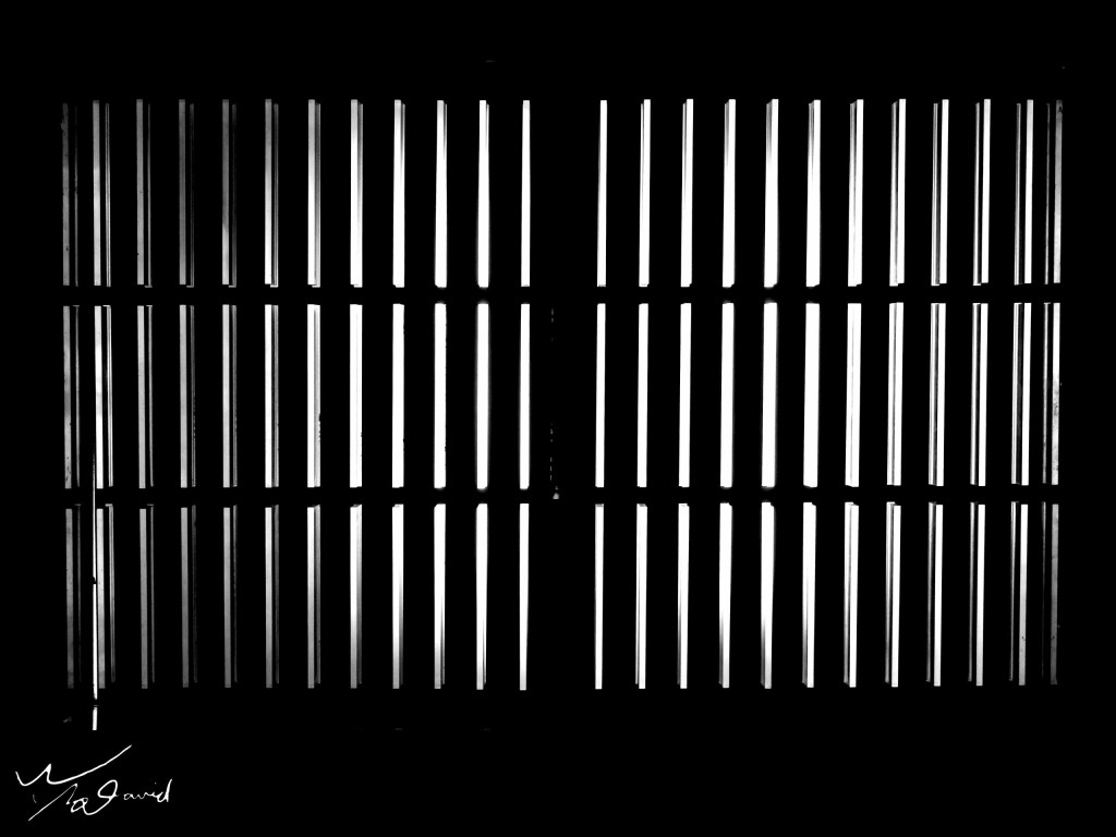 下圖是20170606在泰國旅遊時,用P900拍攝窗上的欄柵,純粹記錄光影對比(ISO-400,F/3.5,1/25秒)。故意在構圖上找到中間點,看似鏡射的作品,但是由欄柵的由中往旁變化,可見不是鏡射結果。用以方法,可以引導觀賞時焦點集中在正中央。