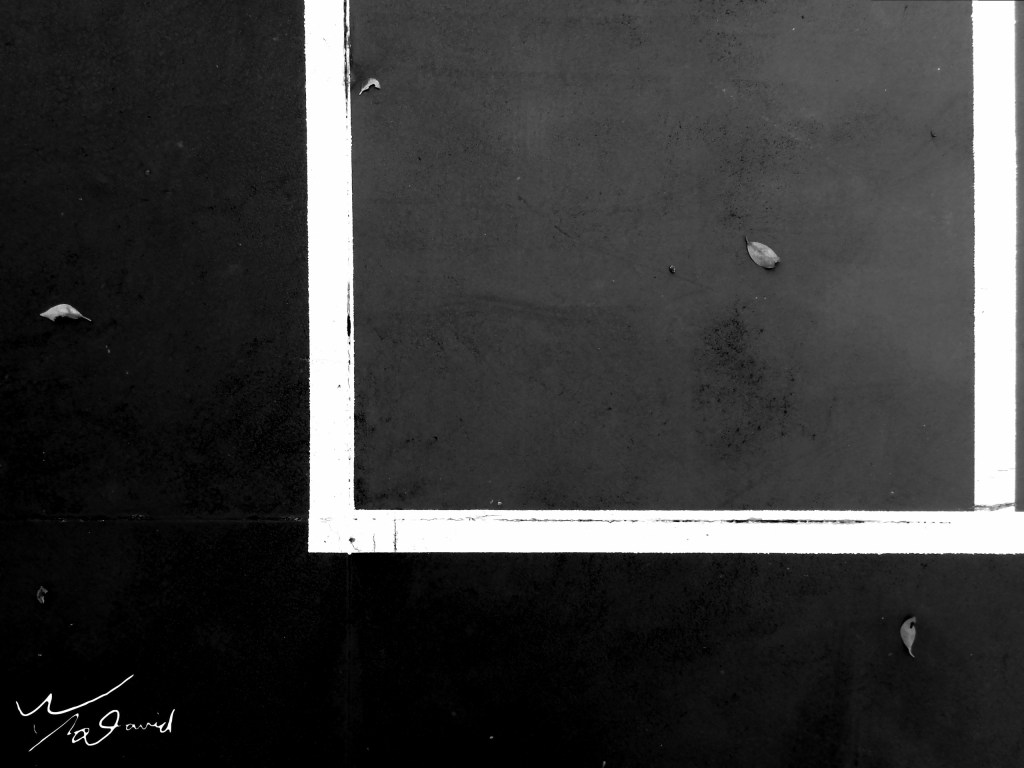 情境式作品,不一定需要遠近景的元素,有時候平面也可以表達。下圖20160830在台北市美堤河濱公園的籃球場,用手機拍攝球場的角落,幾片榕樹落葉分散在場內和場外,意指圈內和圈外的差異。巧合這次東奧羽球賽事,在戴資穎的數次線上球,網友發揮創意的設計圖稿,也屬這類的情境式作品。