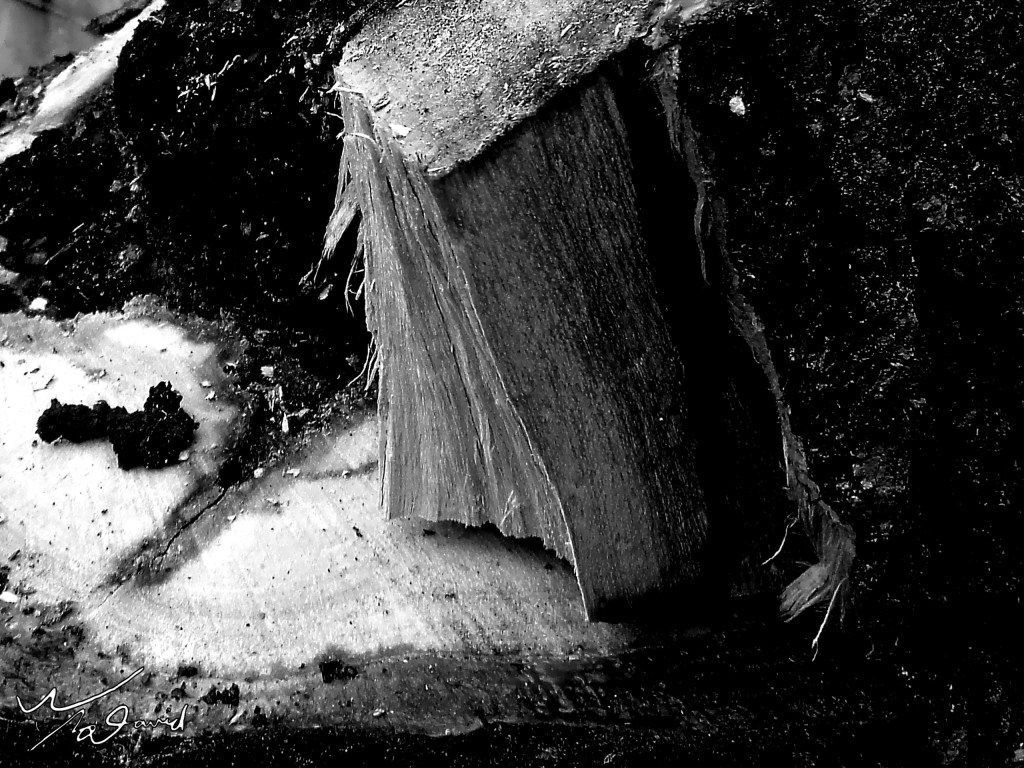 20180327在台北市寶藏巖國際藝術村,看到一棵樹齡可能不超過十年的樹,被鋸斷的痕跡還很新,留下不整齊的切割面,就用手機拍下這一張,名為殤。