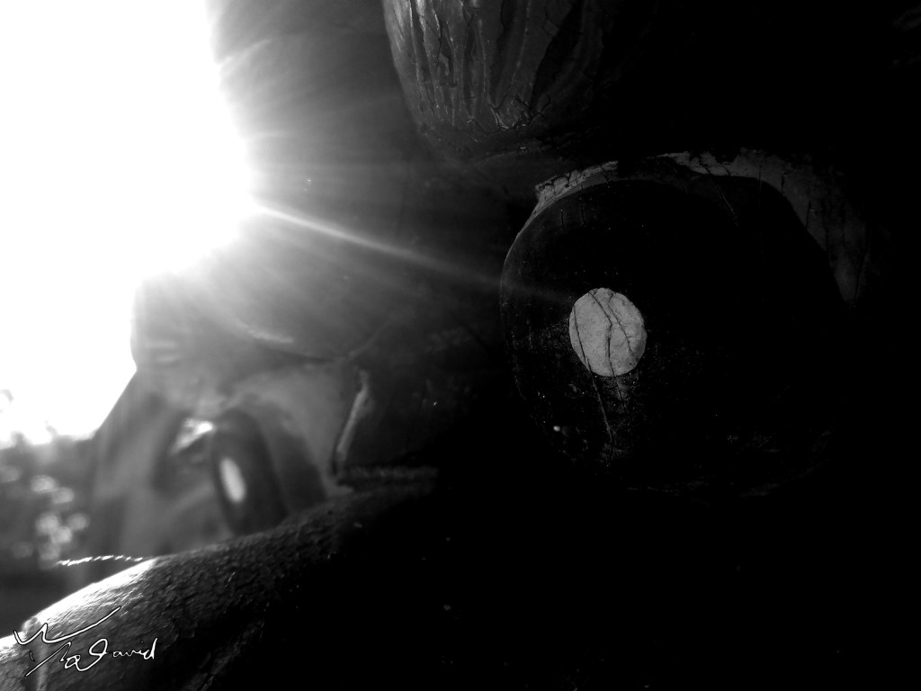 情境敍述用黑白,增加神秘感和質感。接續前一篇提到意象的作品,情境敍述也適用在這類別。主圖20190728在華山文創園區,發現有耶穌光,就找著園區裡象微性的標誌當前景,拍下這張照片(ISO-400,F/22,1/800秒),前景主體全黑,只留部分弧形的反光,主要是背景的光線撒落的軌跡要清楚記錄,所以把光圈縮到最小,按下快門時,剛好有一隻蜻蜓飛過。