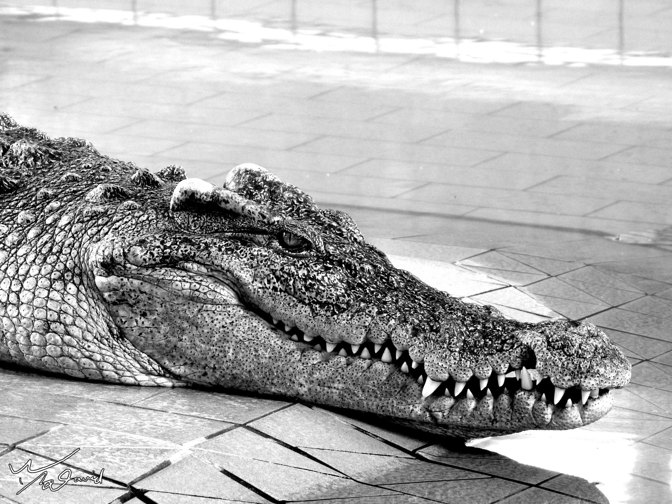 物件的記錄如2017年6月在泰國旅遊,用P900記錄下面兩張黑色照片,左圖是淡浮院牆上的裝飾品(ISO-400,F/8,1/20秒,EV-0.3),這樣拍攝,感覺是往上仰拍的天花板。右圖是在雲石公園的鱷魚表演時,用長焦段拍攝它的神情(ISO-400,F/5,1/50秒)。