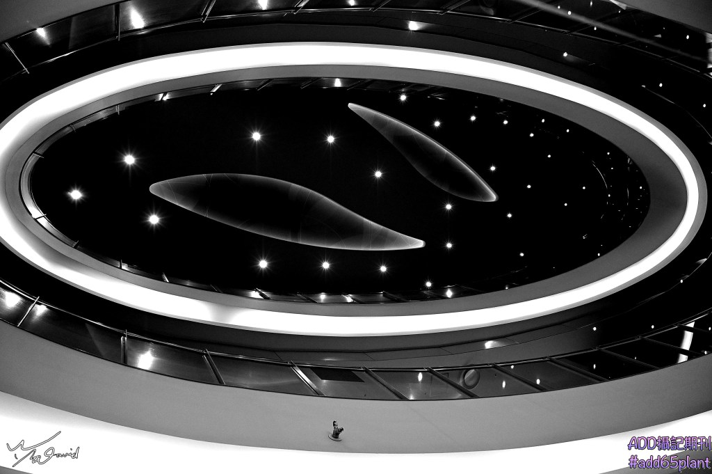 經過這十篇文章分享筆者過去拍攝的黑白照片,大約150張左右,您覺得如何呢?是不是有衝動想拍攝這類照片?如果有問題,歡迎提出,筆者會盡可能解答。最後一張作品是20191009在東京台場裡面拍攝設計過的燈光與建築體的圖形組合,隋圓形的環狀設計(其實是圓形因拍攝角度變成隋圓形),有著在太空船裡看著外面的星空,中間兩塊不規則的物件,筆者是當它為黑洞的意思,很有趣的一幅畫。