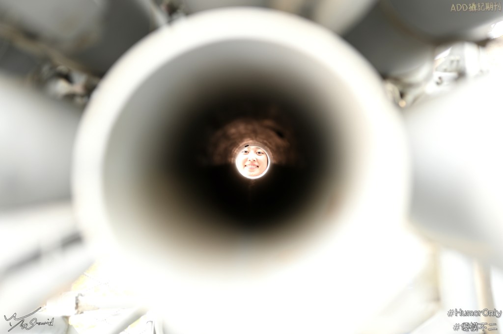 透過圓孔拍攝的人像作品,也是不錯的選擇,可以明顯聚焦在孔洞位置。下圖是在台南安平情定碼頭德陽艦上拍攝(ISO-200,F.2,5,1/200秒EV-0.3),透過砲孔拍攝臉部,是不是也非常有趣呢!