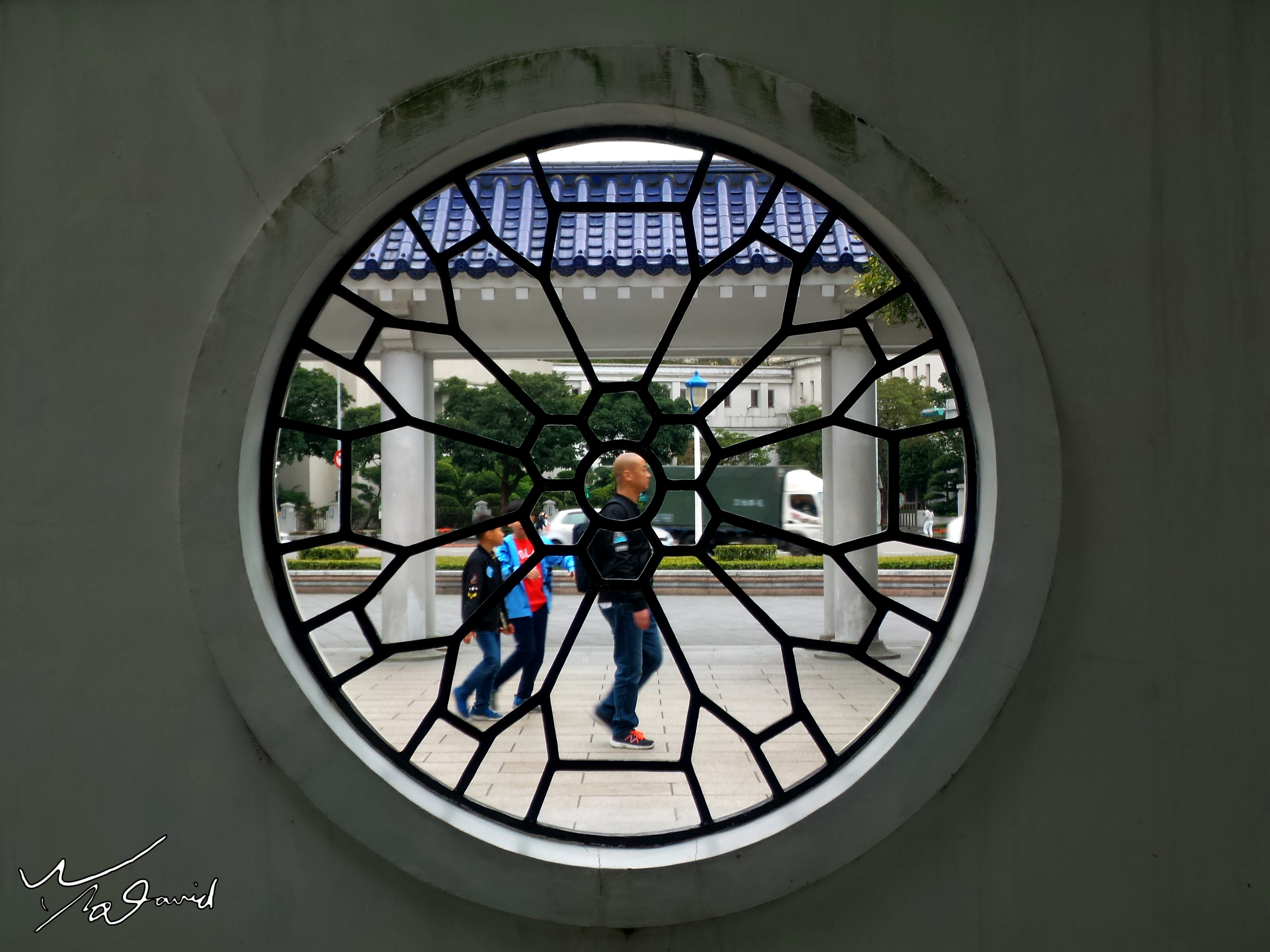 建築結構體,也常見有圓形的幾合圖形,都是可以找出特色進行記錄拍攝。先來看看圓形窗格的作品,下面五張照片除了左上是在台南赤崁樓拍攝,其它四張都是在中正紀念堂捷運入出口的側門拍攝,筆者很喜歡在這裡花很長時間等候,適合的光線、適合的人類動態等做畫面的記錄。
