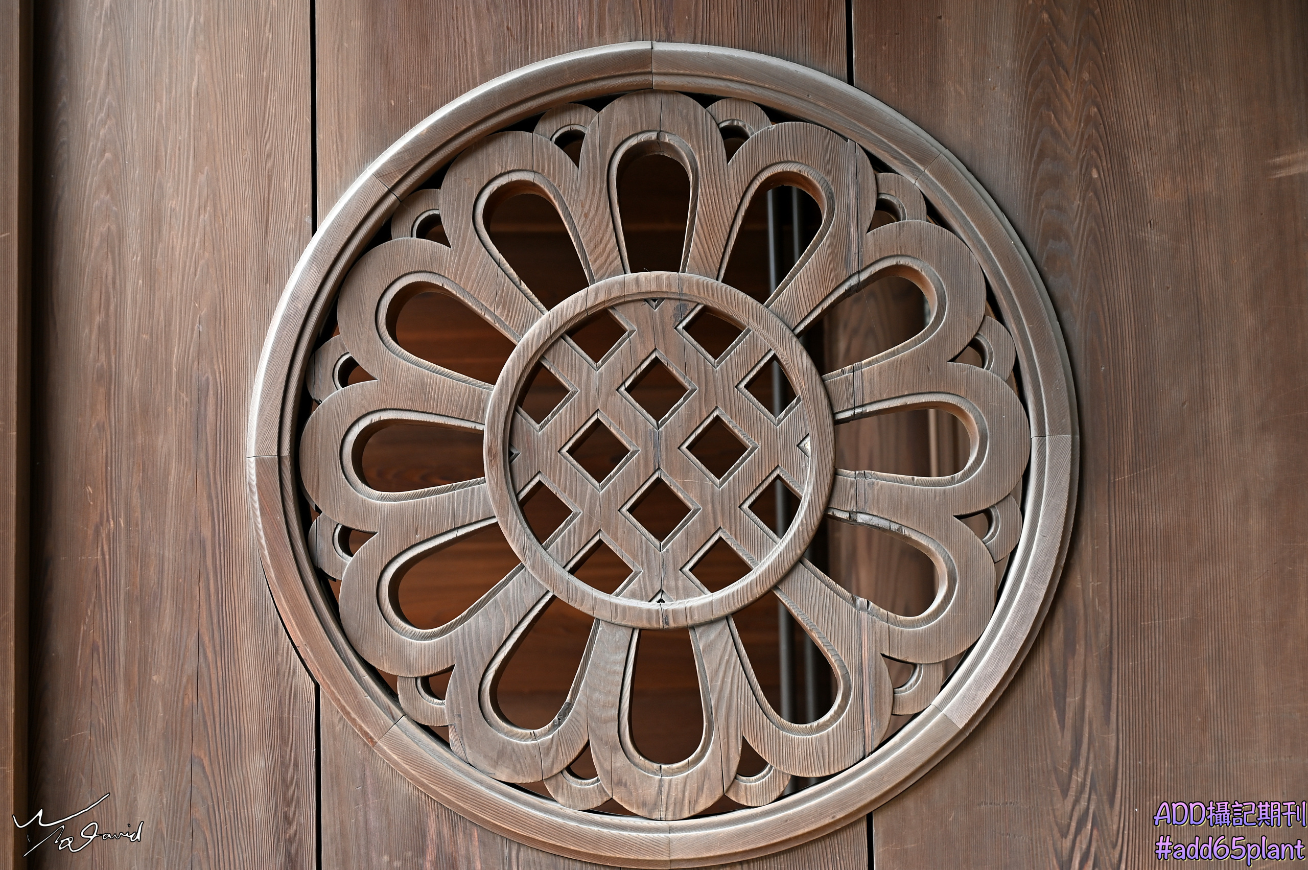建築體圓形結構的裝飾物,例如下面上排左圖,是在台北花卉村拍攝(ISO-200,F/4,1/1600秒),利用圓形陶器的組合,變成一張笑臉,筆者檢拾旁邊掉落的緬梔花放在頭上再拍攝,非常逗趣的作品。上排右側兩圖,是在日本明治神宮拍攝門板上的圓形鏤空雕花,(ISO-500,F/5,1/20秒_1/25秒,EV-0.3)。下排左圖,是在泰國淡浮院拍攝的牆上裝飾品(ISO-400,F/8,1/20秒,EV-0.3),下排中間照片是在台中麗寶樂園,用手機拍攝天花板的裝飾品,下排右圖是日本清水寺園區內的一個神社,中間一個圓形的結構物,寫著神緣(ISO-100,F/4,1/250秒)。