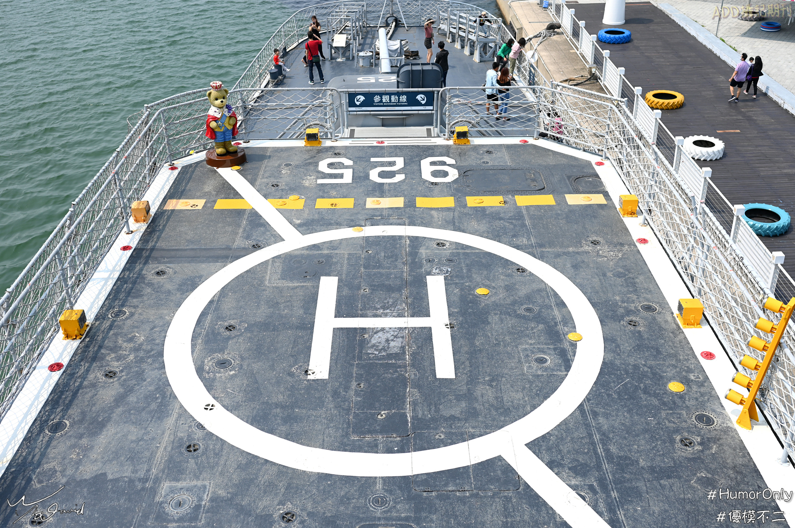 20200430在台南情定碼頭的德陽艦上,除了用炮孔拍人臉那一張之外,還有兩張和圓形有關。左圖是船艦的速度控制盤(ISO-200,F/2.5,1/400秒,EV-0.3),右圖是甲板上的直升機停機坪,有 個大圓形(ISO-160,F/3.5,1/2500秒,EV+0.7)。當然,在碼頭邊的圓形彩色輪胎也可以算是圓形幾合,只是並非主要的元素。