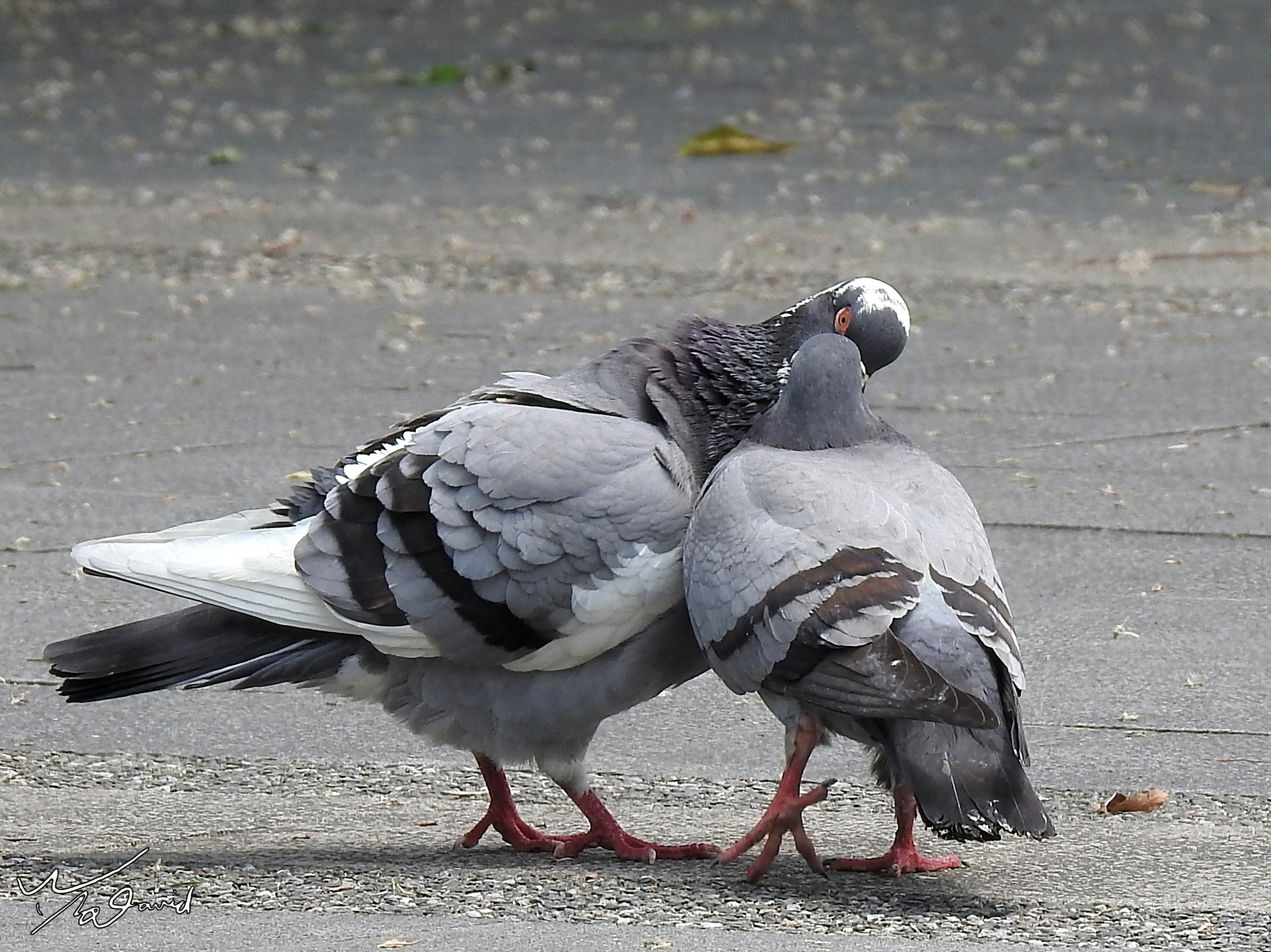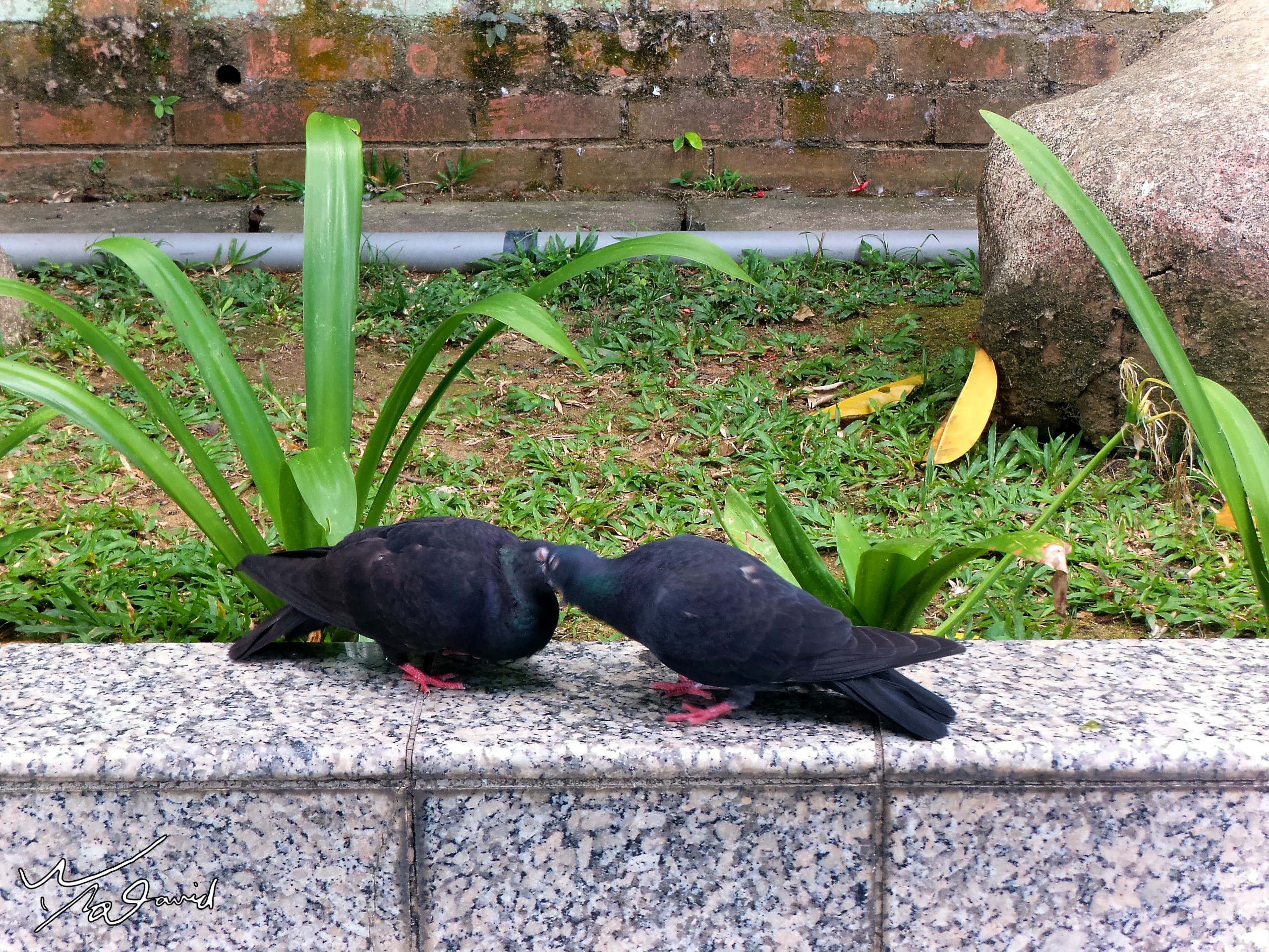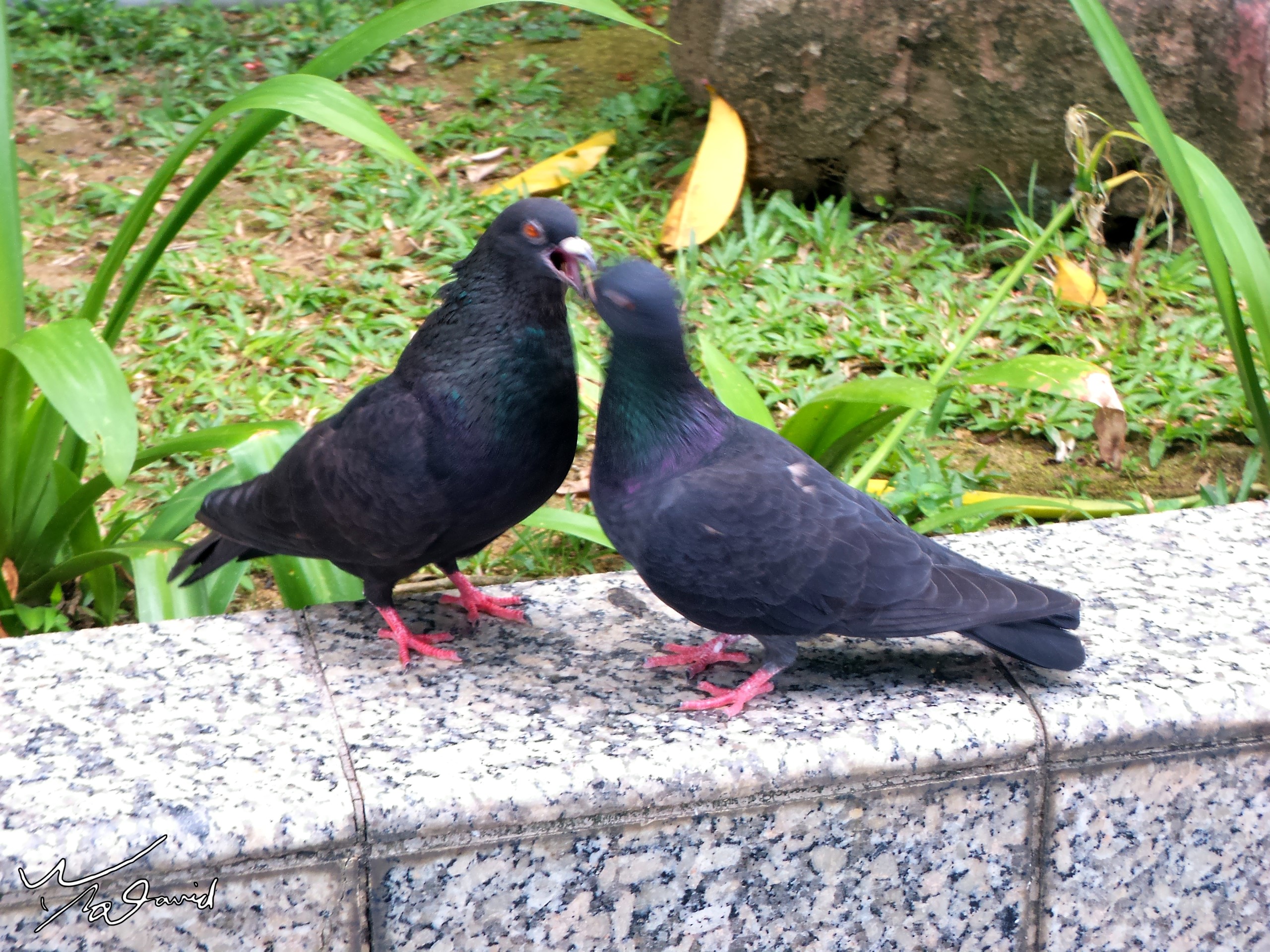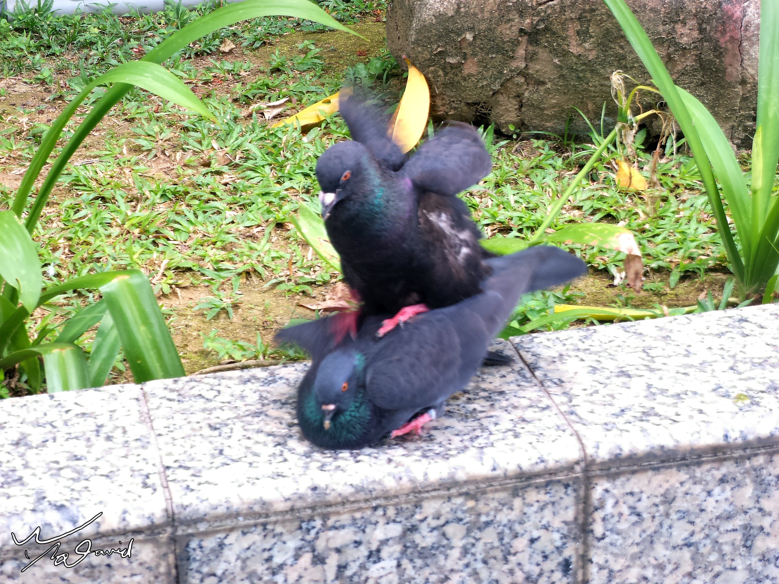 2017年9月在新加坡植物園側門拍到一對野鴿,它們正在進行求偶後的互動,來不及拿出相機,只好用手機快拍幾張。當時看到已經是跳完求偶舞,前三張可以看到兩隻在親嘴,其實是公鴿張開嘴,讓母鴿深入嘴內吃它反芻的食物,算是一種愛的表現吧!經過幾次親密餵食後,公鴿就跳上母鴿身上,開始喬位置,準備進行授精。過程很快,但應該可以經常遇到,有機會您也可以留意看看。