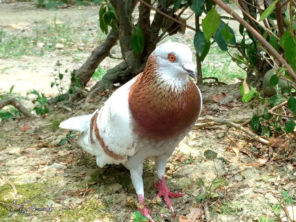 野鴿毛色不是只有暗加灰,也有棕色加白色,變得非常華麗的感覺。下圖是在中和四號公園用手機拍攝。