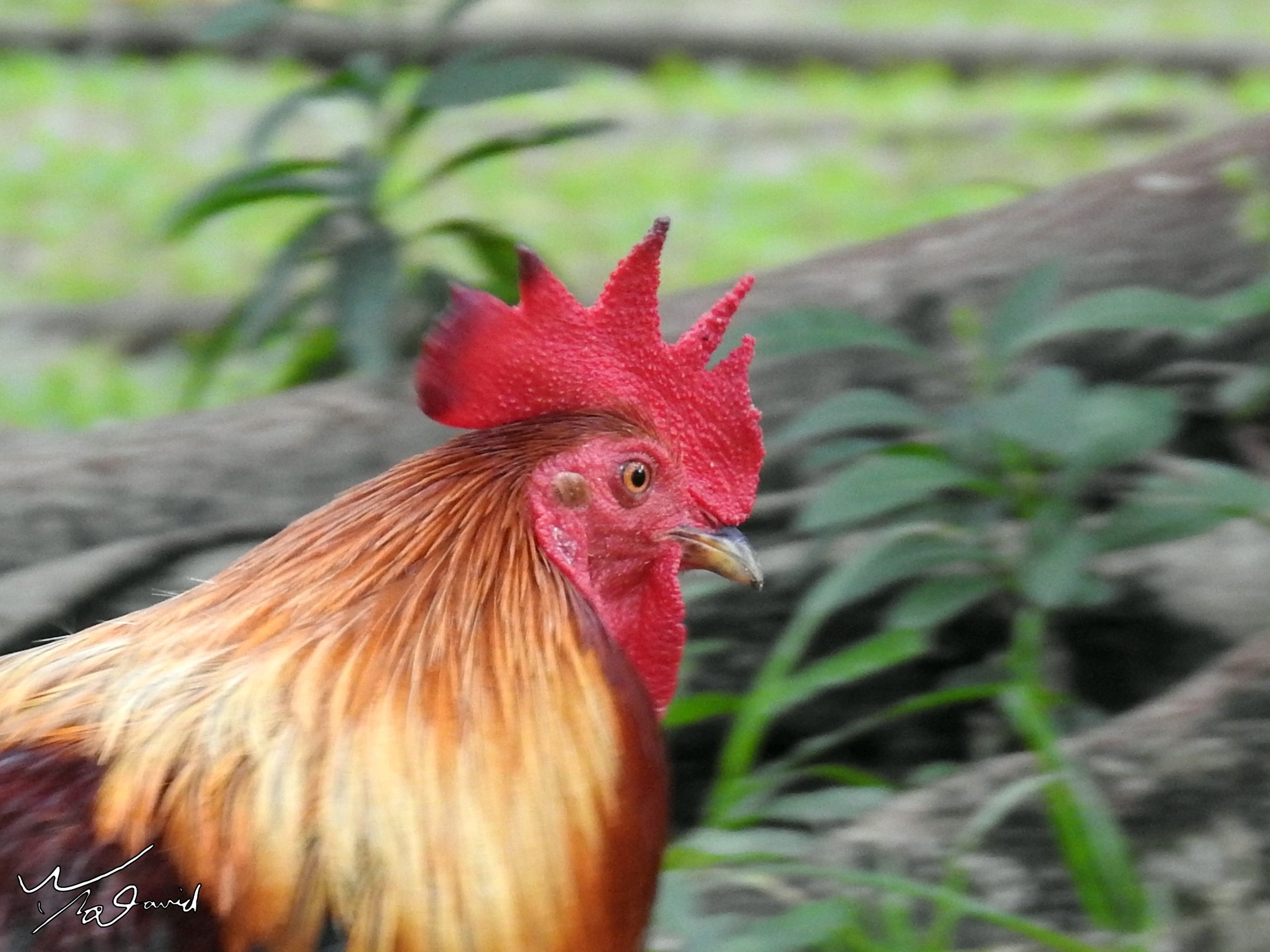 原雞在人類生活中, 不管在那個國家,幾乎成為白肉的主要來源,在台灣很常見,在泰國也是,筆者在2017年於泰國六世皇行宮拍到草地上的雄性原雞,看起來和台灣的品種相同,一樣有雄壯威武的感覺。