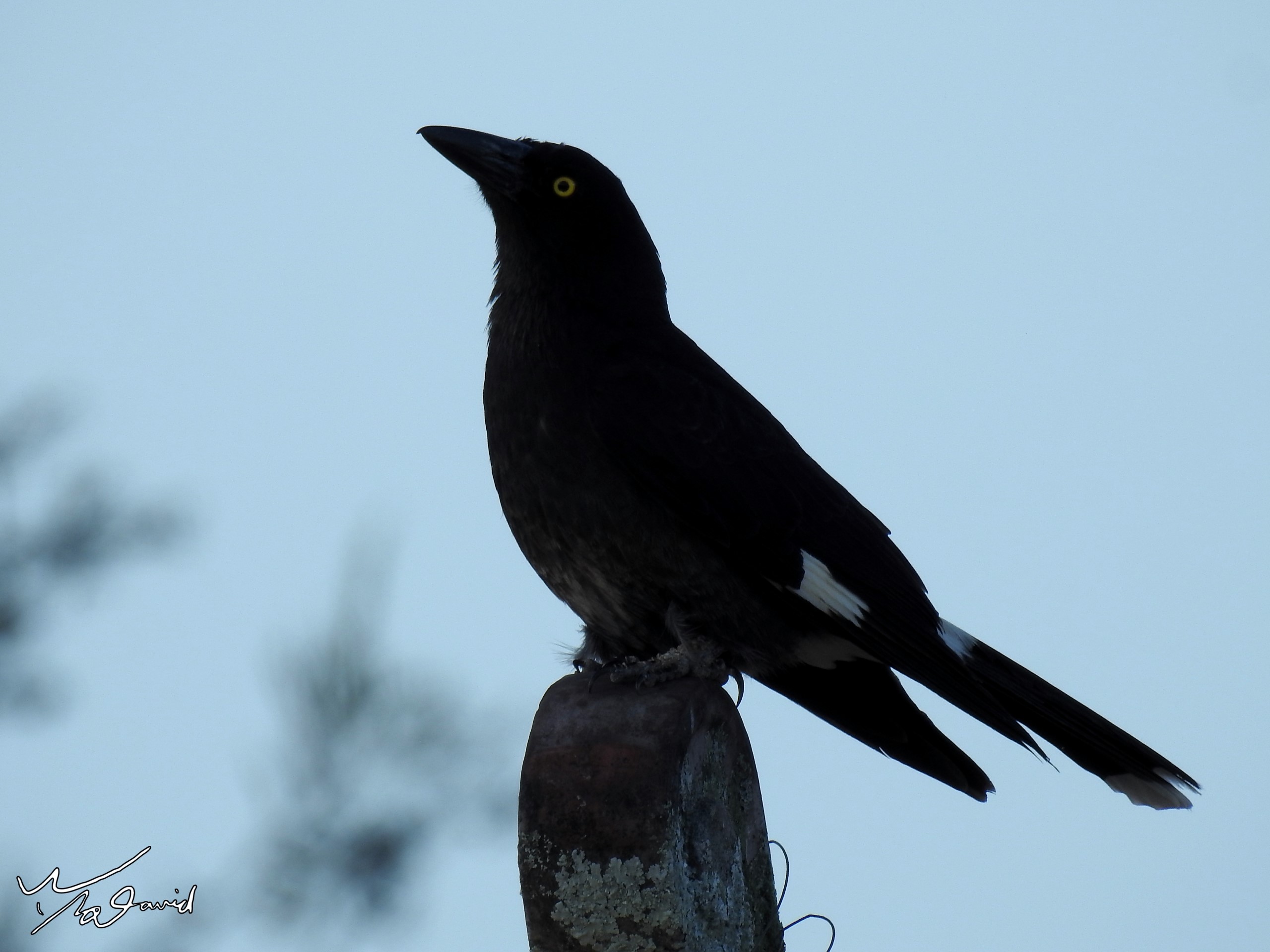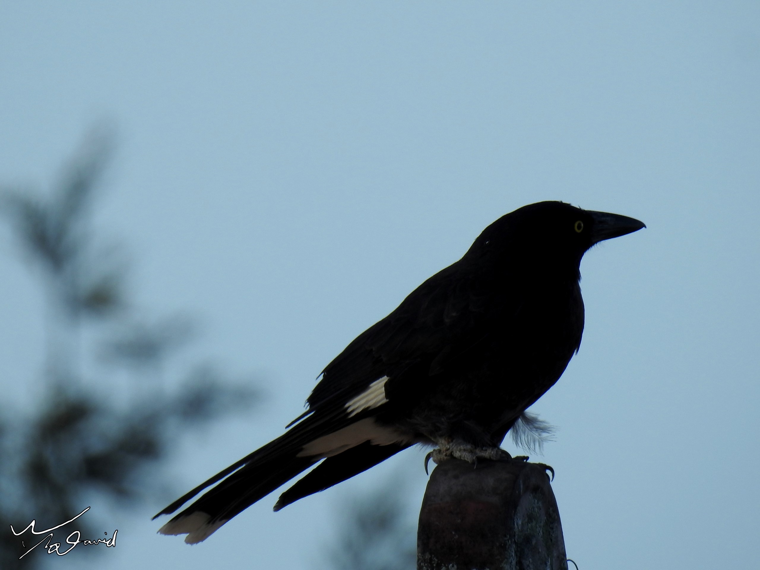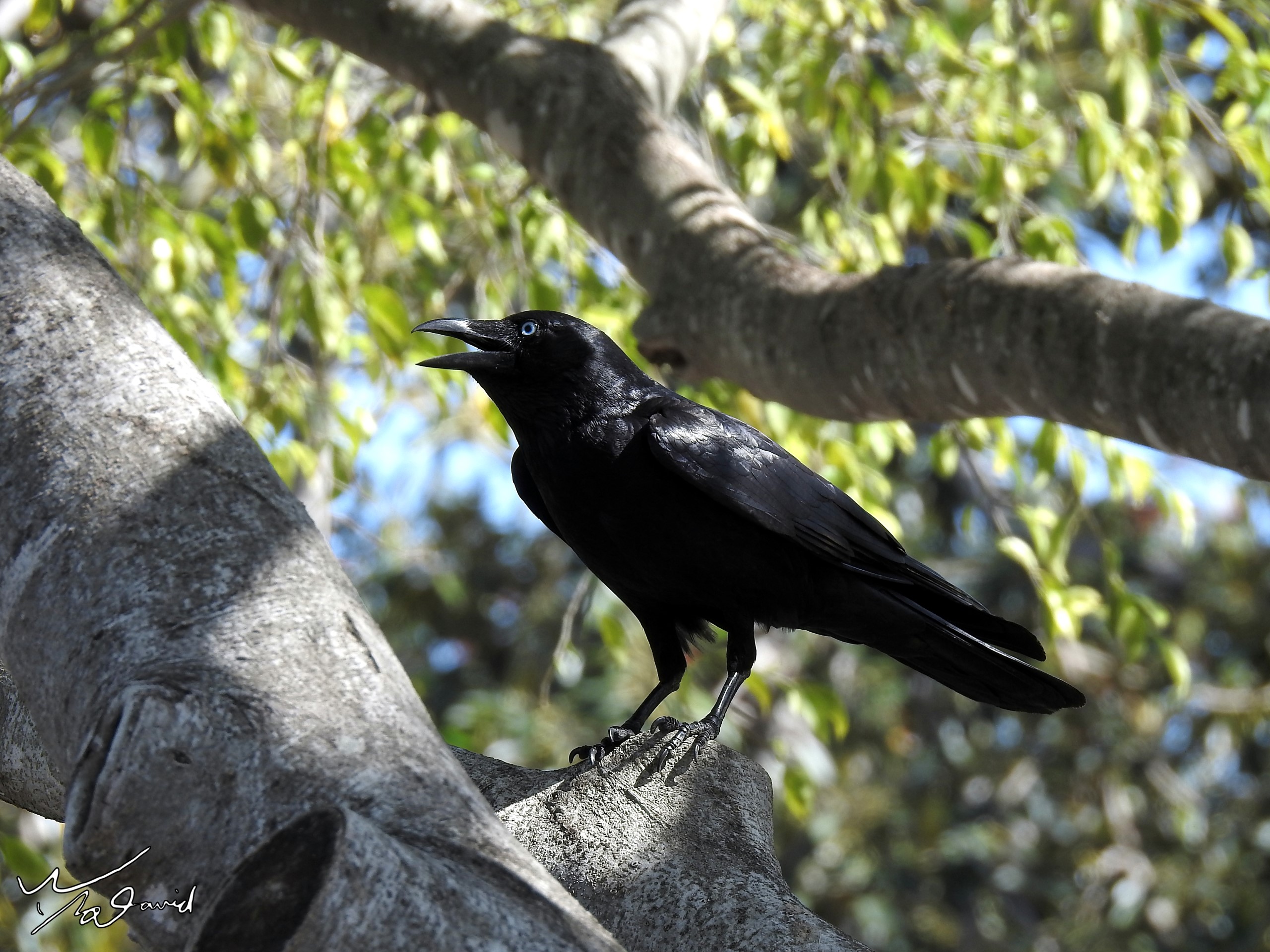 2019年10月在澳洲旅遊時,拍到三種野鳥,第一種是家八哥,在公園涼亭上正在高歌,當時因天色較暗,距離較遠,用P900的長焦段拍攝,鳥身細節較不清楚,但仍可辨識是家八哥。據說在百年前澳洲引進家八哥是為了幫農作物除蟲,卻沒想到它還會破壞本土鳥的蛋與巢,造成一種外來種侵略的情況,後來只好開始撲殺,但也無法完全。右上圖看它高歌的樣子,日子過得還真爽的樣子。第二種是全身黑毛的烏鴉,在陽光下發亮的黑色羽毛,真的很搶眼。看它的眼睛,還真的有阿逗仔的感覺,藍眼,這個特徵有點讓筆者感到懷疑人生,它是小嘴烏鴉?考量是在澳洲拍攝,再查資料澳洲渡鴉是當地特有種,眼睛的特徵和筆者拍到是一樣,照片顯示有藍色,應該是陽光角度的關係。