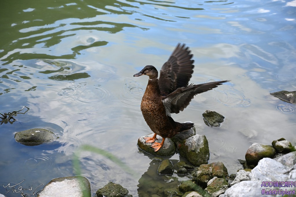 2019年7月陪新加坡朋友訪宜蘭,在龍漂埤看到許多野鴨(騾鴨),拍了其中一隻正在展翅拍胸的野鴨,毛色非常漂亮,花紋也很特別。根據資料顯示,騾鴨是在跨種配對的後代,不具繁衍後代的能力,就像騾一樣,但騾鴨卻意外在發達的社會環境中,成為主流的鴨肉來源。
