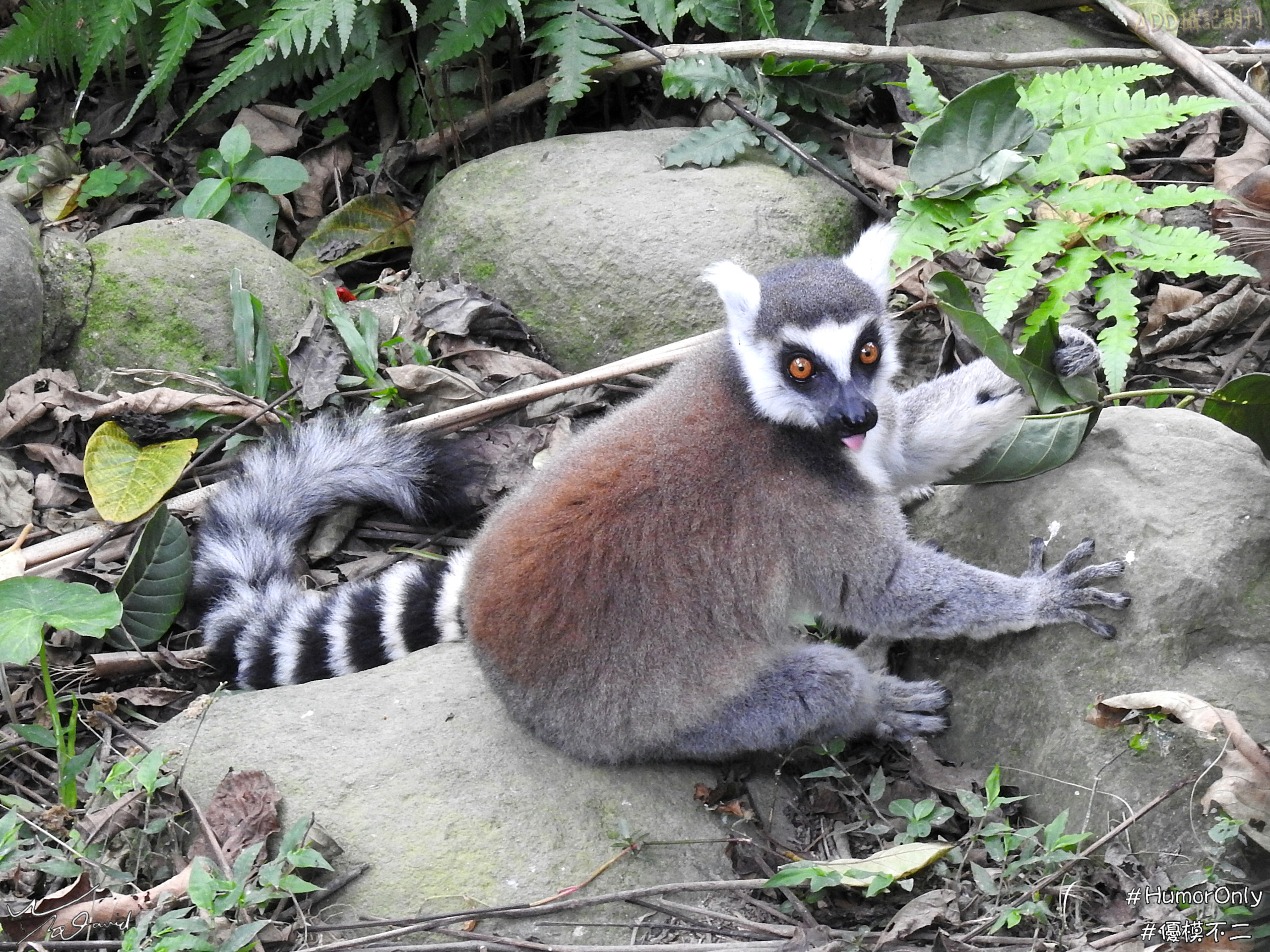 環尾狐猴的尾巴特色是環狀黑白相間毛色,眼神非常銳利,似乎有著一種不安的表情,隨時東張西望在觀察四周,左下圖最可愛,吐著舌頭就像在扮鬼臉的小淘氣。
