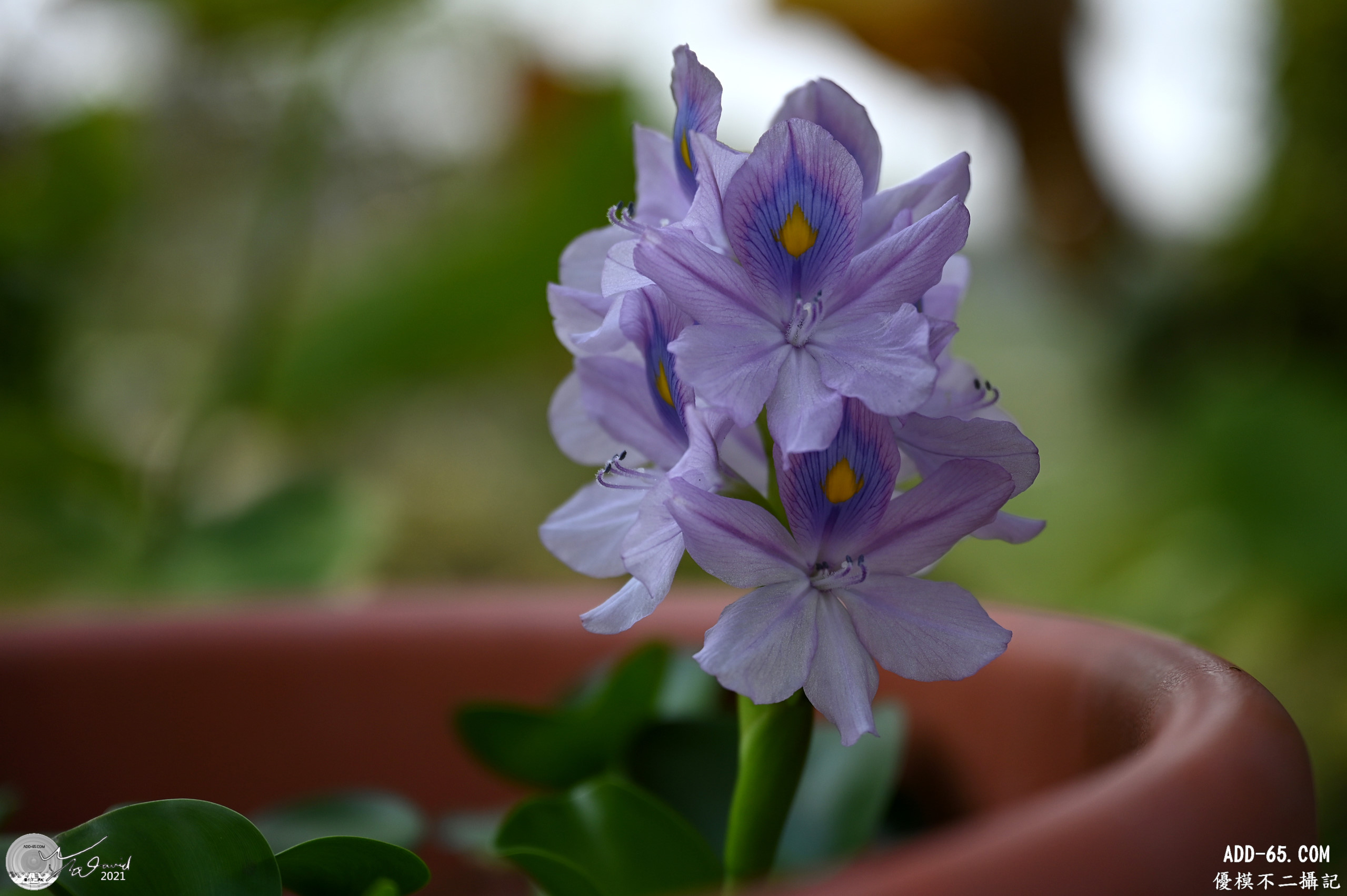 庭園裡還有一池種植布袋蓮,剛好有開幾朵花,就拍個特寫吧!布袋蓮的花,非常貴氣華麗。左圖是在松湖驛站拍攝,右圖是之前分享過在4月份到台南白河萬里長城時拍攝的照片。