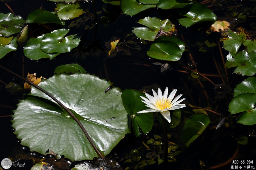 筆者在園區裡待了一小時左右,幾個池繞著看著,終於找到白色的蓮花,唯一一朵還在開花狀態,觀察它的葉片,邊緣也是具有鋸齒狀,但比較沒有那麼明顯,應該也是齒葉蓮花。趕緊拍攝後,收拾相機準備離開園區轉往下一目的地,離開前向園主打聲招呼,感謝他大方提供這麼棒的休閒好去處,下次有機會一定會再來拍攝和品茗。