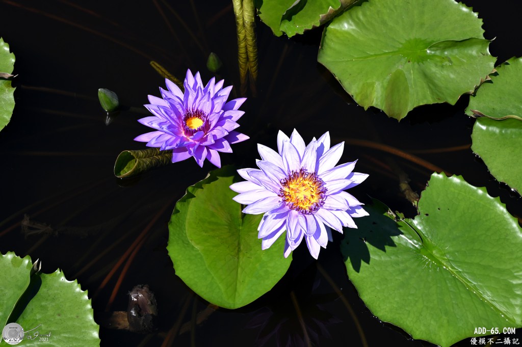 如果角度不對,池面就不會有倒影,也不會有太陽反射的星芒,下圖的角度剛好是相反,所以和上面有星芒的照片,看花朵的影子就知道方向不對。