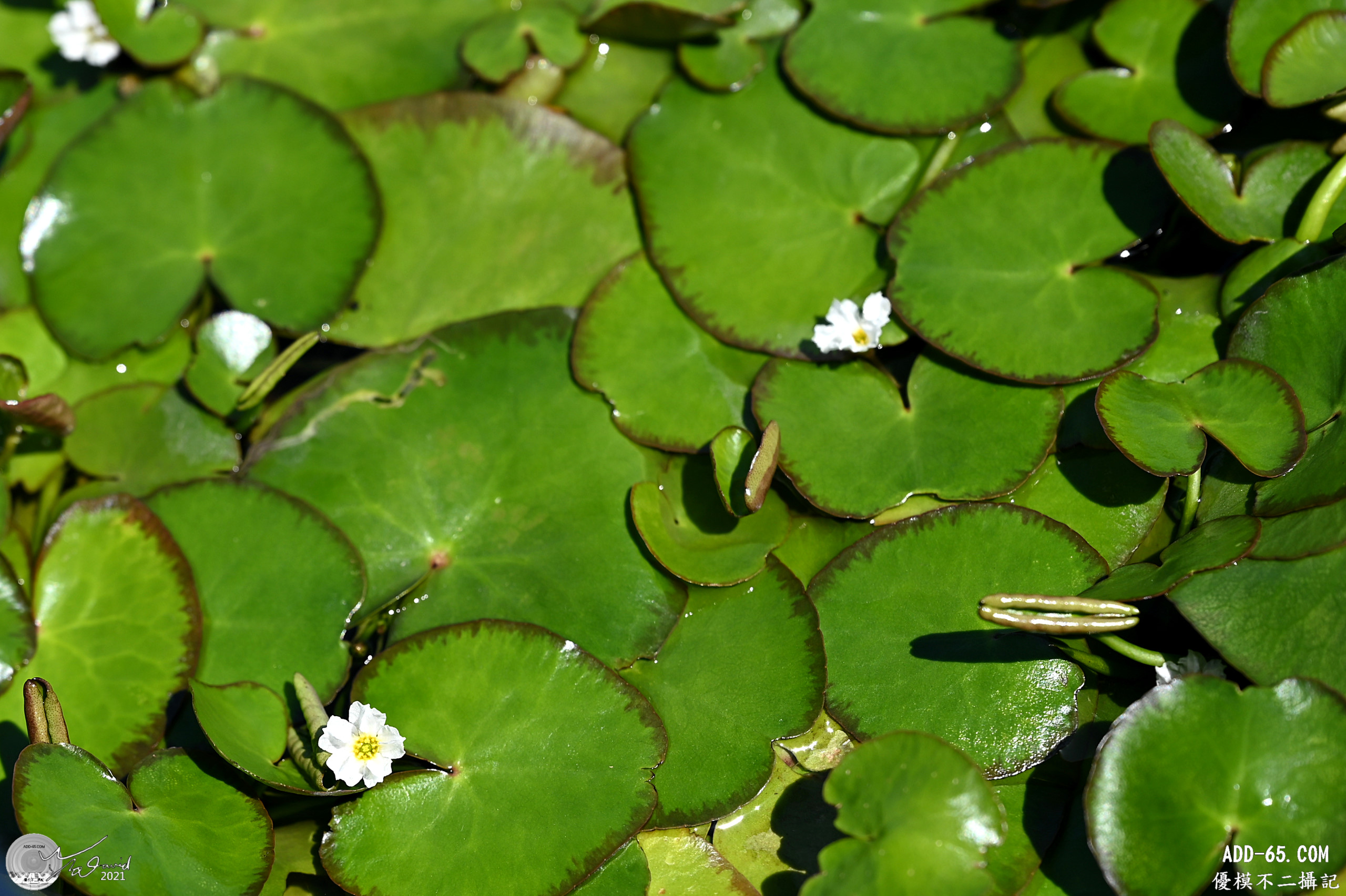 另外一種是龍骨瓣莕菜,花朵極小,比粒大一點而已,名為龍骨瓣是指花冠裂片中間有一突起如龍骨。這兩種莕菜都是同科(睡菜科_Menyanthaceae)浮葉植物,莖細長可以讓葉片隨著水位高低而平貼浮在水面上。但上圖拍攝到的印度莕菜葉片似乎有不少都抬出水面,可能是水盆中的空間不足,植株數量較多,相互擠壓而形成抬高的現象。