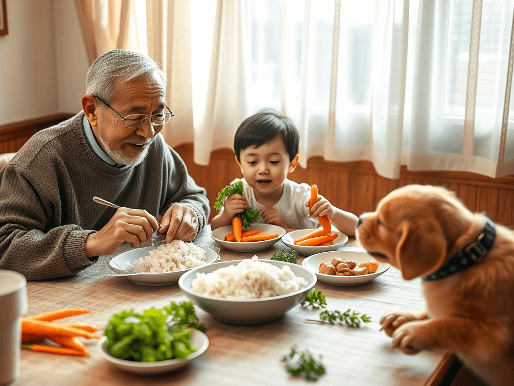 我常看到三個世代同桌吃飯的畫面:爺爺挑軟飯、媽媽忙著催孩子吃青菜、