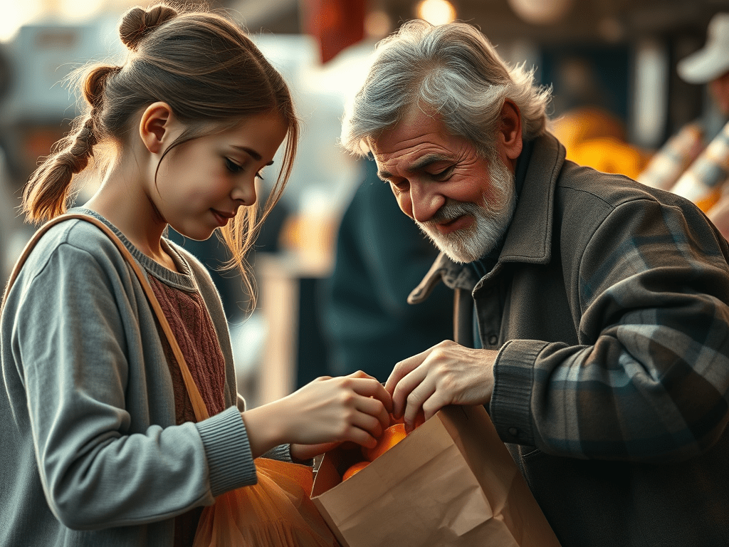 最後還把自己的袋子給了老先生。
